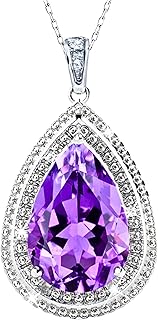 1.65 Carat Natural Amethyst Gemstone Necklace, 8mm x 12mm Pear Cut, February Birthstone, 925 Sterling Silver, Gift Box Included